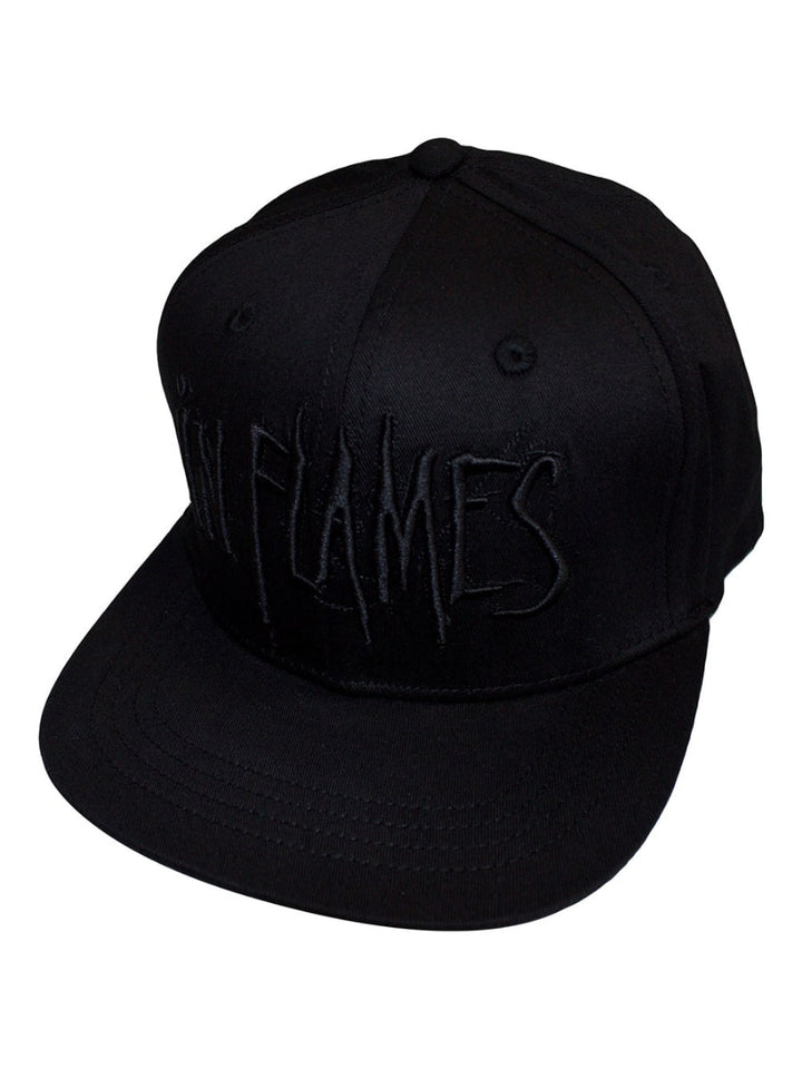 Official licensed unisex cotton Snapback Cap featuring the In Flames Black Logo design. High quality Snap Back style cap with hi-build embroidery to front & back.