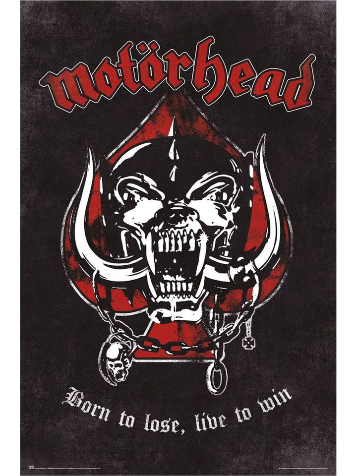 Official licensed Motorhead maxi poster featuring the Born To Lose, Live To Win design. Produced in the UK and printed onto high quality 180gsm paper, this poster is perfect for the bedroom of any Motorhead fan. Size 610mm x 914 mm